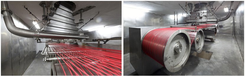 南洋電纜有限公司具有兩條國際領(lǐng)先水平AB型高頻高壓電子加速器,用電子加速器輻照電線電纜是輻照加工的重要領(lǐng)域,它集結(jié)電子技術(shù)、高能核物理技術(shù)、真空技術(shù)、計(jì)算機(jī)技術(shù)、輻照化學(xué)技術(shù)和電線電纜制造技術(shù)于一體,是當(dāng)今高新技術(shù)的榜樣。由電子加速器產(chǎn)生的高能電子束,作用在聚合物內(nèi)部,使聚合物的分子結(jié)構(gòu)產(chǎn)生顯著的改變,由原本的線性變成不溶不熔的三維網(wǎng)狀結(jié)構(gòu),從而使材料具有特別的耐熱性、耐化學(xué)性、耐輻照性、高阻燃性、高強(qiáng)度性。